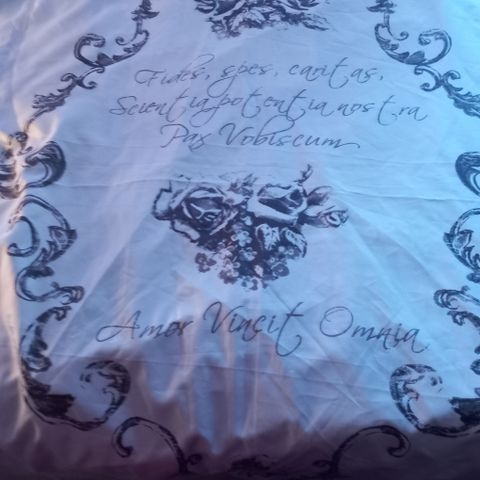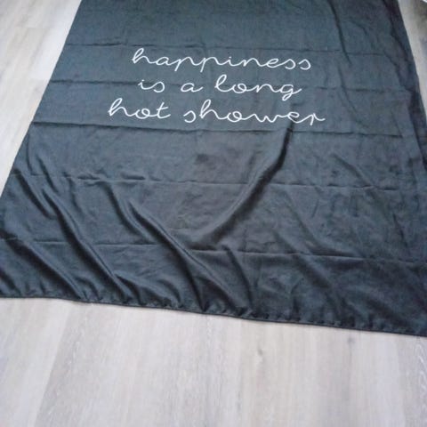 Valkopohjainen siisti tekstiili suihkuverho.