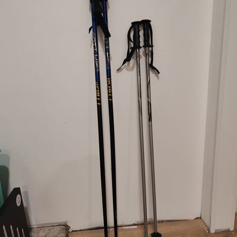Hangten alloy 130cm laskettelusauvat. Pintanaarmuja on aika paljon, mutta eivät haittaa käyttöä. Syviä kolhuja ei ole ja sauvat ovat täysin suorat. Kärjet ovat ehjät.