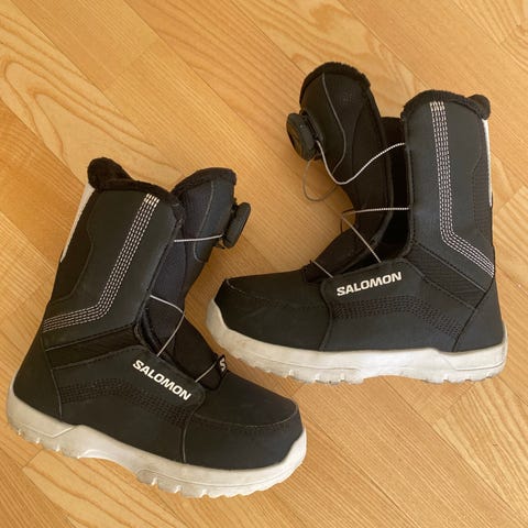Salomon Launch Boa Jr lumilautakengät lapsille. Kengissä on Boa-kiristysjärjestelmä, joka helpottaa ja nopeuttaa nauhojen kiristämistä. Väri on musta. Koko EUR 32 (JP 20, UK 13K, US 13K). Sopivat junioreille lumilautailuun. Käytetty noin 20 kertaa.