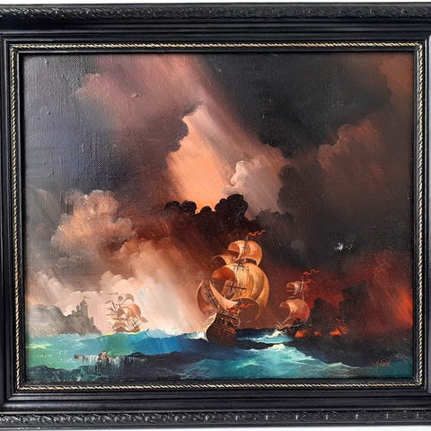 Veneaiheinen maalaus satamasta
