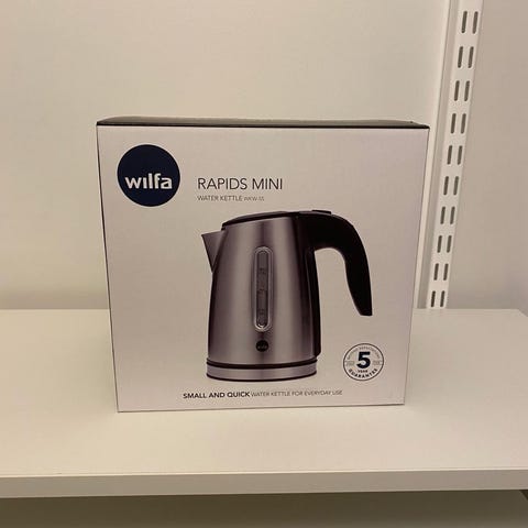 Käyttämätön varrasgrilli. Tasolla voi grillata samalla, kun alapuolella valmistuu vartaat. Vartaat tietysti pyörivät sähkön voimalla.