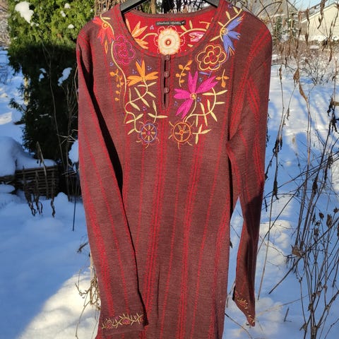 Gudrun Sjödén kaunis hyväkuntoinen neuletunika koko S. Kai-kai 47 cm, olka-helma 92 cm. Materiaali puuvilla. 40 e + lähetyskulu