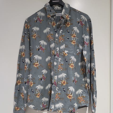 Myydään miesten kirjava (viininpunainen/valkoinen) Dressmannin kauluspaita kokoa M. 60% puuvilla ja 40% polyesteri.