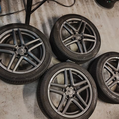 Myyntiin/vaihtoon mersun alta vanteet etuset 8.5 tuumaa takaset tuuman leveemmät et noin 45 kunto hyvä renkaissa noin 7mm pintaa lipoissa lakka vikaa mikäli heräsi kiinnostus niin laita viestiä numeroon nollaneljäneljä23I4875 vanteet hämeenkyrössä