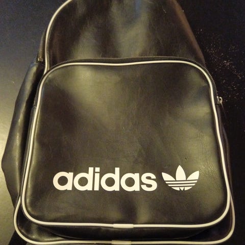 Adidas kangasnyörireppu. Vihreä kangasmateriaali, edessä suuri musta Adidas-logo. Reppu suljetaan yläreunan nyöreillä, jotka toimivat samalla olkahihnoina. Sivussa vetoketjutasku pienille tavaroille. Sopii esimerkiksi urheilukamppeiden tai arkitavaroiden kuljettamiseen. Kuvissa näkyy kulumaa logopainatuksessa.