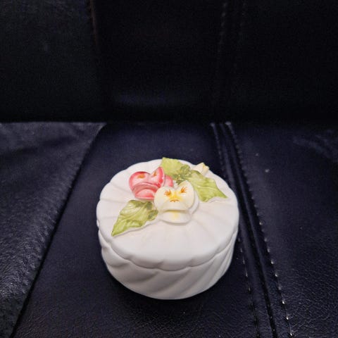 Tämä pieni rasia sopii erinomaisesti sisustuselementiksi, korurasiaksi tai osaksi kokoelmaa. Edessä teksti "BELGIUM" ja sivuilla kauniit kukkakuviot.