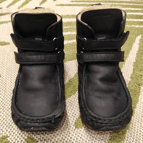 Ruskeat zeazoo yeti paljasjalkakengät, koko 33. Uutena ostetut. Käytetty suutarilla, joka vahvistusommellut molempien kenkien kärjet. Alkuperäiset ompeleet menneet poikki. Ylemmät tarrat repsottaa, kuva enemmän repsottavasta. Ei toistaiseksi vaikuta käyttöön. Suutarilla pystyy fiksaamaan halutessaan. Kantapäässä kulumaa karvassa.