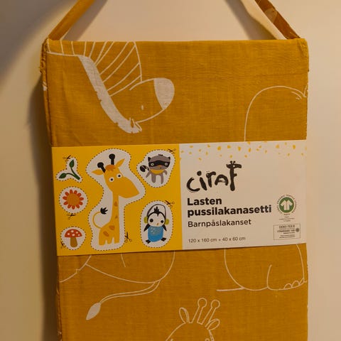Pussilakana 100x130cm, tyynyliina 38x55cm.