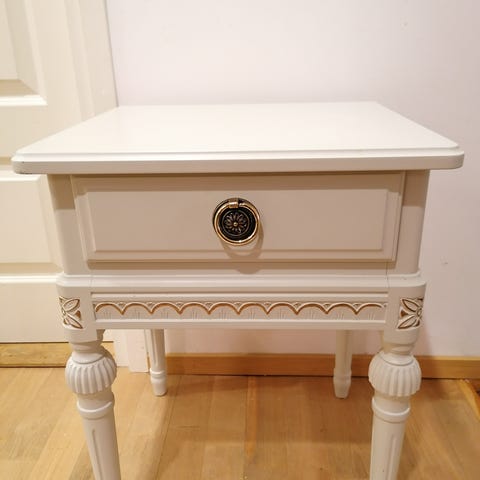 Myydän 1 kpl Kustavilainen yöpöytä. Kunto hyvä. Nouto Kontulasta.