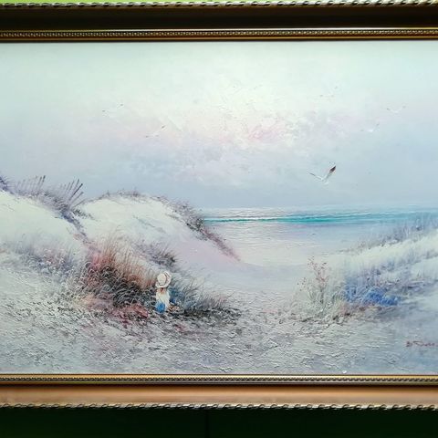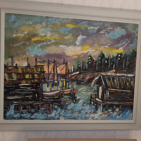 Näyttävä meritaulu jykevillä kehyksillä. Myydään muuton vuoksi. Taulu on noin 113 cm leveä ja 60 cm korkea. Paksuus/syvyys on noin 6 cm.