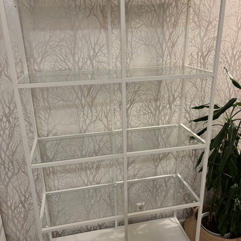 Ikeassa ei myydä enää tätä valkoisen värisenä. Rungon kunto on hyvä ja lasi ehjä. Myydään pelkkä hyllykkö ei sisältöä!