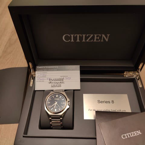 Hieno Series 8, ref NB6031-56E, cal 9054 jossa käyntivara 50 tuntia. Kellossa GMT-toiminto, kaksisuuntainen bezel, safiirilasi ja tehostettu magneettisuojaus. Kellon halkaisija 41 mm, paperit 1/24.