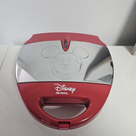 Myydään italialainen 90-luvun Ariete retro leivänpaahdin, jossa Disney Mickey Mouse Mikki Hiiri Mornin' klassinen kuviointi 50-luvulta, molemmilla puolilla on erilainen kuva. Ulkokuori on metallirosteria. Mahdollista määrittää paahdannan kesto ja keskeytys-nappi. Paahtaa mikin pään kuvat leipiin. Irroitettava murulaari. Tilaisuus ostaa haluttu vanha aito Mikki-paahdin ! vintage metalli leiväpaahdin morning mornin metallinen pelti peltinen vanha 90-luku vanha paahtaja