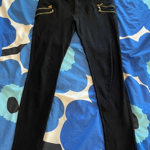 Hopean väriset joustavat housut koko XL. (Kuva vääristää mustan suuntaan, väri on hopea.)