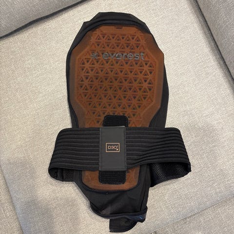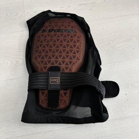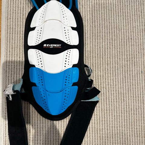 Everest selkäpanssari, koko 152–164 cm. Väri musta. Selkäpanssarissa on joustava, säädettävä vyötärövyö tarrakiinnityksellä sekä olkaimet, jotka auttavat pitämään suojan paikoillaan. Vetoketjukiinnitys edessä. Soveltuu esimerkiksi lasketteluun, lumilautailuun tai muuhun lajiin, jossa tarvitaan selkäsuojaa. Ostettu meille uutena ja ollut yhden lapsen käytössä muutamia kertoja.