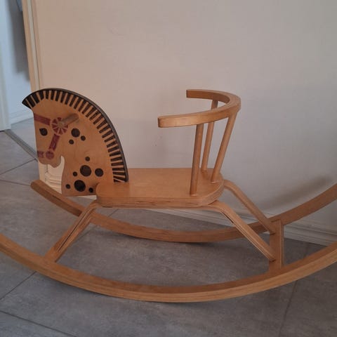 Hyväkuntoinen puinen keinuhevonen. Kokonsa vuoksi mielellään vain nouto.