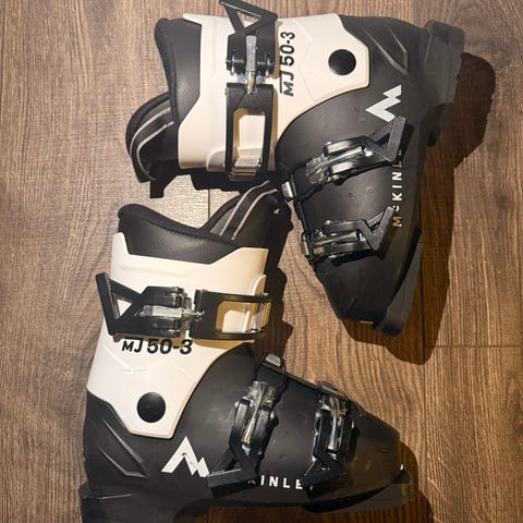 Mckinley MJ 50-3 laskettelumonot. Pohjan pituus 306 mm ja kokomerkintä 26,0–26,5 eur41. Väri musta, pohjassa ja yksityiskohdissa keltaista. Monossa kolme solkea ja tarrakiristys jalan tukemista varten. Jonkin verran käytön jälkiä mutta ehjät ja yleisilmeeltään siistit.