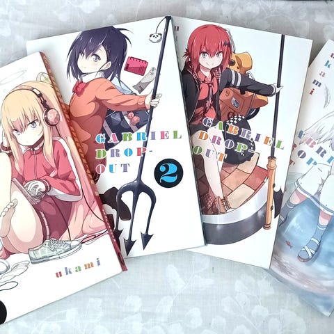 Myynnissä otsikossa mainitut osat Gabriel Dropout sarjasta (suomenkielinen julkaisu), eli yhteensä 11 osaa.