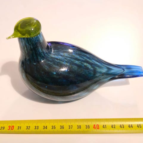Iittala Oiva Toikka lasilintu, valmistettu Suomessa. Lintu on suupuhallettua lasia ja väritykseltään punainen, valkoinen ja tummanharmaa/musta. Sopii keräilyesineeksi tai sisustusesineeksi esimerkiksi hyllylle tai ikkunalaudalle.