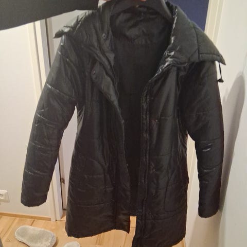 Uusi naisten takki, jossa etuosa untuvaa ja hihat ja selkä pörrökangasta. Koko M. Väri ruskea, jossa hieman violetin sävyä valaistuksesta riippuen. Kevyt ja käyttömukava takki.