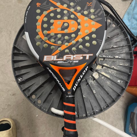 Dunlop Rocket padelmaila. Mailassa on pyöreä pää ja tasaisesti sijoitetut lyöntipinnan reiät. Väritys on musta ja harmaa, ja rungossa on Dunlop- ja Rocket-merkinnät. Sopii padelin pelaamiseen eri tasoisille pelaajille. Kahvassa on rannelenkki mailan kiinnipitämisen helpottamiseksi.