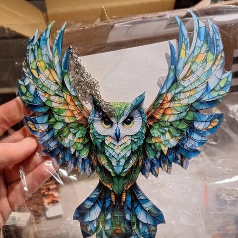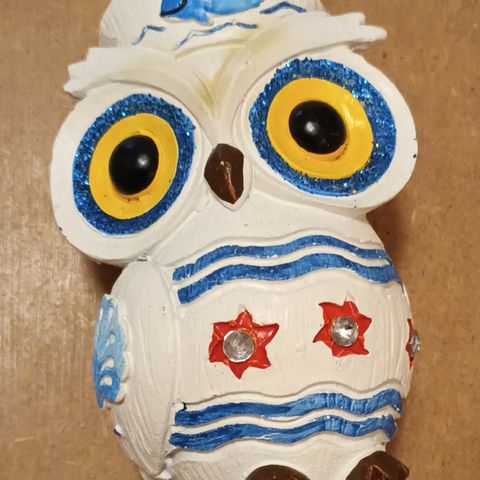 Uusi roikkuva pöllökoriste, n. 19 x 16 cm.
