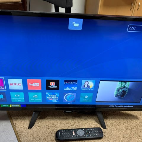 Myydään vuonna 2017 ostettu TV. Peruskäyttö (kanavat ja HDMI-liitännät) toimii, TV:n omat sovellukset (Netflix ym.) toimivat hitaammin. Mukaan virtapiuha ja kaukosäädin. Nouto Helsingin Kalliosta.