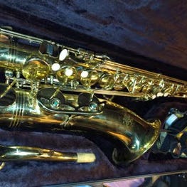 Saksofonissa on selkeitä käytön jälkiä, kuten naarmuja ja patinaa. Näppäimet ovat kuluneet. Yleisilmeeltään soitin on vanha ja kaipaa huoltoa, mutta se on silti vaikuttava esine. Ei testattu toimintoja, myydään sellaisenaan.