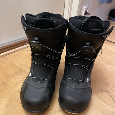 Salomon Boa lumilautakengät. Kengät ovat mustat ja niissä on harmaa sisävuori. Kiristys tapahtuu Boa-kiristysjärjestelmällä, joka mahdollistaa tasaisen ja tarkan istuvuuden säätämisen. Koko on 39 (EU). Soveltuvat lumilautailuun rinteissä ja parkissa. Kengissä on kumipohja ja pehmustettu varsi käyttömukavuuden ja tuen lisäämiseksi.