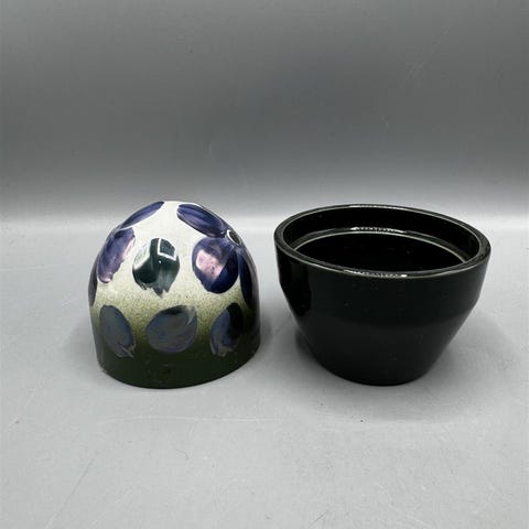 Keraaminen koriste-esine Arabia St Paulia iki-kukka , jossa on kukkakuvio. Esine koostuu kahdesta osasta, jotka voidaan erottaa toisistaan. Väritys on monivärinen, pääasiassa sinisen ja vihreän sävyissä.