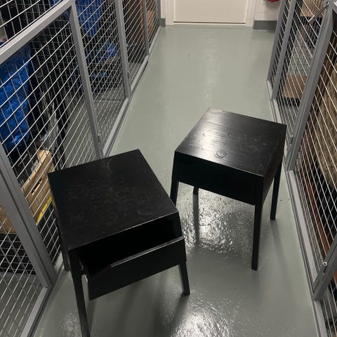 Siistit pikku yöpöydät/hyllyt. Väri vaaleanpunainen.