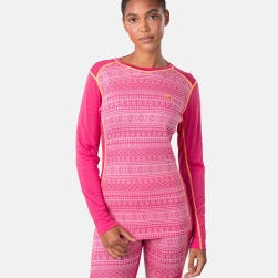 Kari Traa Vilma Long Sleeve on 100 % merinovillasta valmistettu pikähihainen kerrastopaita, joka pitää sinut lämpimänä myös kosteana. Sileä ja pehmeä Vilman Jacquard-neulos muistuttaa lumisadetta, ja joustavat kainalopaneelit mahdollistavat vapaan liikkumisen. Imarteleva pyöreä kaulus, napakka istuvuus ja raglan-hihat tekevät Vilmasta lämpimän aluskerroksen kylmiin talvipäiviin. Villakuidut lämmittävät kosteana sekä kuivana Kainalopaneelit Lämmin Jacquard-neulos Ohuet saumat takaavat sileän lopputuloksen Taitettava helma Brodeerattu logo 100% Merinovilla Teknologiat: Merinovilla - Mulesing-vapaa.