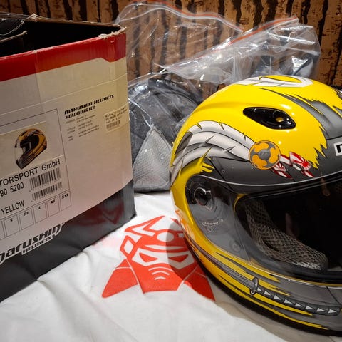 Tarpeettomana ok kuntoinen Marushinin kypärä suojapussilla. Koko M 57/58cm.