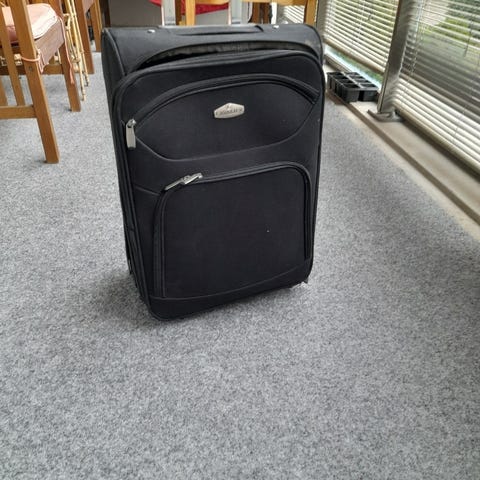 Korkeus pyörien kanssa n 55cm, leveys 35cm ja syvyys 25cm. Hyvät pyörät. Vahva kuori. Paino vain 2,4kg.