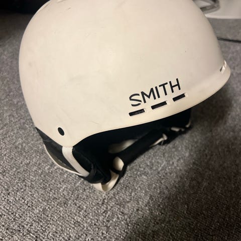 Mattavalkoinen Smith laskettelukypärä. Vain vähän käytetty (ja aina kypärähupulla). Hyvä säädettävä tuuletus sekä Boa säätömekanismi. Paino noin 480 g.