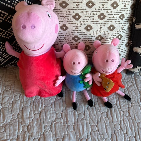 Pipsa Possu pehmolelusetti. Settiin kuuluu äiti possu, isä possu, Pipsa ja Jyri.