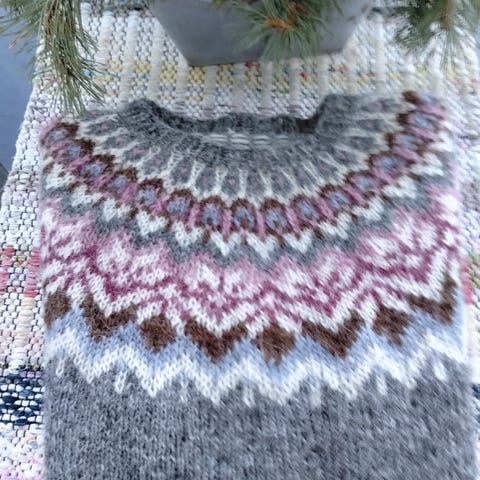Myydään uusi islantilaisneule, malli Afmaelin ja Riddarin yhdistelmä. Lanka aitoa islantilaista villalankaa nimeltään Plötulopi. Se on kevyttä ja ilmavaa sekä joustavaa. Mainio vaate sisäkäyttöön ja ulkokäyttöön tai vaikkapa varapaidaksi mukaan kun on kevyt ja sopii pieneen tilaan. Niskaa nostettu jotta istuu paremmin eikä kurkuta, näkyy yhdessä kuvassa. Kainalo-kainalo 46 cm. Miehusta kainalosta helmaan 39 cm. Hihan mitta hihansuusta kainaloon 49 cm. Koko mitta takaa kauluksesta neuleen alareunassa 64 cm. Työ siistiä käsityötä ja mittasuhteet oikeat. Tässä mainio vaate kaikenlaiseen retkeilyyn ja kyläilyyn. Koko S. Voin lähettää myös postin kautta. Jos asut lähellä tai kulkua Tampereelle niin poikkea katsomaan neuleitani.