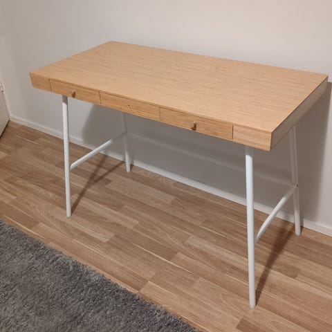 Toimiva pöytä, kokopuu joten voi hioa ja maalata jos haluaa. Kohtalaisessa kunnossa, ollut gaming pöytänä ja tarkoitus oli maalata mustaksi mutta muuton takia nyt myydään.