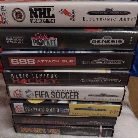 Mega Key adapteri Sega Mega Drive -pelikaseteille. Laitteessa on DIP-kytkimet, joilla voidaan valita eri alueiden (USA, Japani, Brasilia) pelikasettien asetukset. Adapteri liitetään konsolin ja pelikasetin väliin mahdollistamaan eri alueiden pelien käyttö yhteensopivassa Sega Mega Drive -konsolissa. Laitteessa on selkeät merkinnät kytkinten asennoista eri alueiden kaseteille.