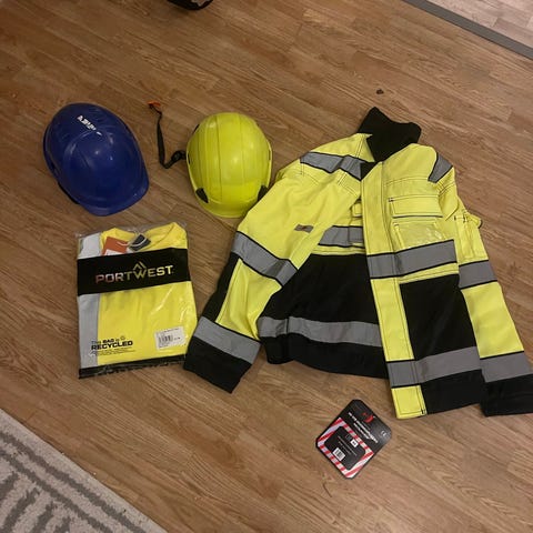 Täyspolyesteripaita, uusi ja käyttämätön. 3M-heijastinlinjat, kauluksellinen, ylänapit. Muutama löytyy tarvittaessa.