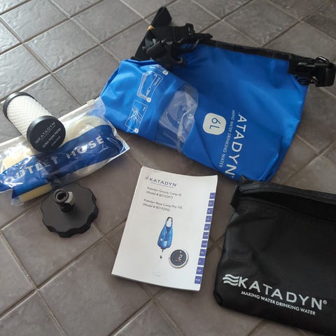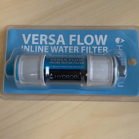 Käyttämättömäksi jäänyt juomaveden puhdistaja. Mukaan myös paketissa oleva vaihtosuodatin.