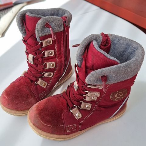 Meille käytettynä tulleet ja meillä käyttämättä jääneet siistit reiman talvisaappaat. Olivat väärään aikaan sopivat pojalle. Ehjät sisältä ja kantapäistä. Alaosa mokkaa. Hyvät lenksut varressa mistä vetää kenkä jalkaan. Eläimetön talous.