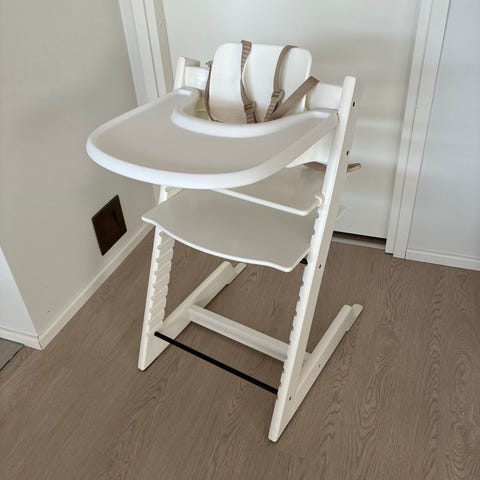 Ostetaan stokke baby set ja tarjotin, myös valjaita voi tarjota.