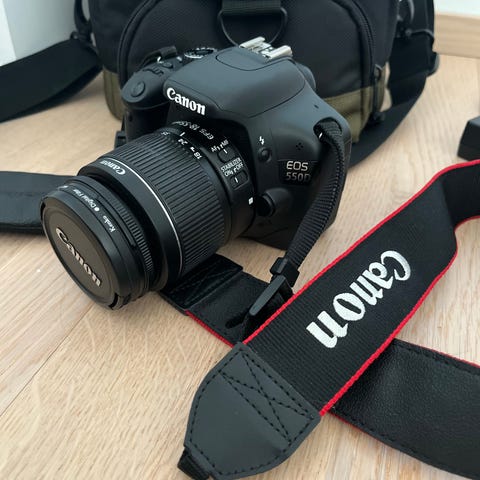 Canon EOS 500D digitaalinen järjestelmäkamera, jossa mukana Canon 18–55 mm zoom-objektiivi kuvanvakaimella. Mukana olkahihna, akkulaturi, akku sekä objektiivin etu- ja takasuojat. Nouto Latokaskesta Espoosta tai postitus.