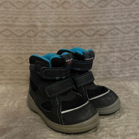 Viikkarin jo monella lapsella nimistä päätellen kiertäneet talvikumpparit. Käyttö näkyy ja kuluneisuutta on, mutta hienosti ajaa asiansa. Käytetty syksyllä ja piti jalan kuivana ja lämpimänä. Poika rakasti väriä eikä kellään ollut samanlaisia. Eläimetön talous.