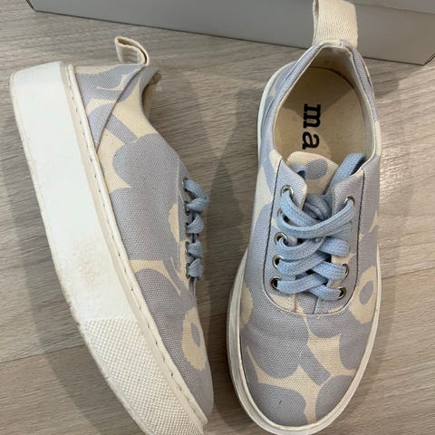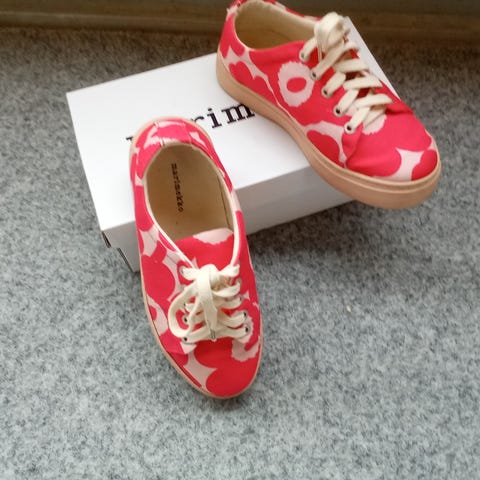 Marimekko Mini Unikko Niittyheinikossa-tennarit, koko 36. Mukana punaiset vaihto kengännauhat. Uudet ! Mukana myös säilytyslaatikko.