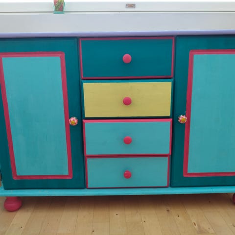 Päällä maitolasilevy. Keskimmäinen kaapin ovi kiristetty saranasta huonosti ja on hiukan vino. Säätämällä saa suoraksi. Painava ja laadukas. TARJOA!