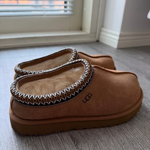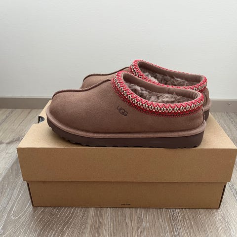Uudet, täysin käyttämättömät Ugg Tasman ll Slippers kengät sävyssä Chestnut. Koko 38, mutta vastaa paremmin kokoa 37. Olikin itselle liian pienet 38,5 jalkaan, joten ei ole tullut käyttöön.