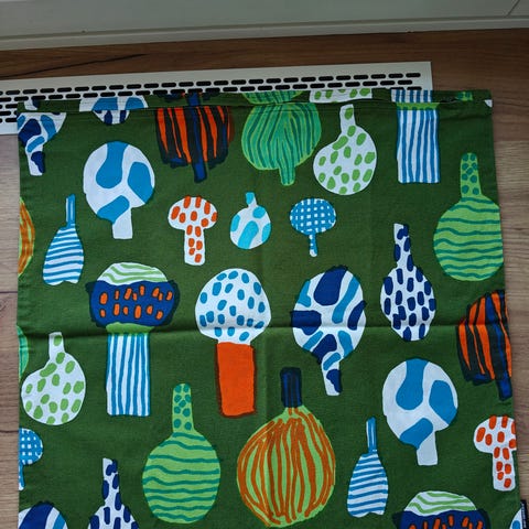 Marimekko kankaasta ommeltu päällinen 45 × 45 vetoketju kiinnitys yhdestä palasta on ommeltu 3 kappaletta