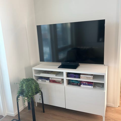Myydään hyväkuntoinen ikea bestå mustanvärinen tv taso jossa ikeasta ostetut mustat tv tason jalat.